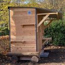 Conseil de protection du bois: appliquez une lasure à l’eau, une huile ou une peinture d’extérieur afin de protéger le bois contre les insectes, les champignons et les moisissures. Une cabine entièrement réalisée en bois doit être traitée et entretenue régulièrement pour éviter toute altération due aux intempéries.Informations diverses :