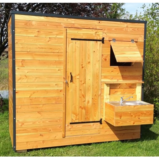 Le Cube Sanitaire Pikabano, vous permet de répondre de manière pratique, esthétique et efficace à l’accueil de vos hôtes, en leur offrant une intimité et un accès indépendant à un espace salle d’eau et WC extérieurs. Sa structure en bois et ses petites dimensions lui permettent de s’intégrer très facilement dans n’importe quel paysage et lieu.