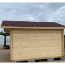 - ● Structure par emboitement en pin massif madriers et façades épaisseur 46 mm