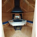 Le Kota Mini, c’est tout ce qui vous a plu dans le Kota « standard » : l’aspect atypique et nordique de sa construction bois, ses fonctions possibles (grill, pièce de jeu pour les enfants, bureau d’accueil…), son intérieur cosy… Tout est identique… mais en 4,5 m2 !