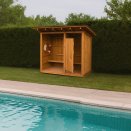 Conseil de protection du bois: appliquez une lasure à l’eau, une huile ou une peinture d’extérieur afin de protéger le bois contre les insectes, les champignons et les moisissures. Une cabine entièrement réalisée en bois doit être traitée et entretenue régulièrement pour éviter toute altération due aux intempéries.
