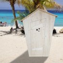 Conseil de protection du bois: appliquez une lasure à l’eau, une huile ou une peinture d’extérieur afin de protéger le bois contre les insectes, les champignons et les moisissures. Une cabine entièrement réalisée en bois doit être traitée et entretenue régulièrement pour éviter toute altération due aux intempéries.