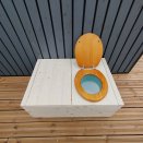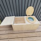 ● Kit Toilettes Sèches complet comprenant : Abattant en bois, 1 seau de 15L, caisson à copeaux de bois avec pelle.